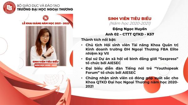 TEDxVNUIS “Unlock the Unknown” 2023 | Start-up Cultivation Program 2022 | FBA Talent Development Mentorship Program 2023 | Trà Nghề Podcast 2023 | FPT Leader Talk “Women in Tech 2022 | Talkshow “Win U Game 2” 2022 | FTU Orientation Day 2023 | Bee A True Mastermind 2021 | Employer Branding Seminar 2020 | Elite Leadership Sharing 2019 | FemaLEAD – Vietnam Young Woman Leadership Mentorship Program 2021